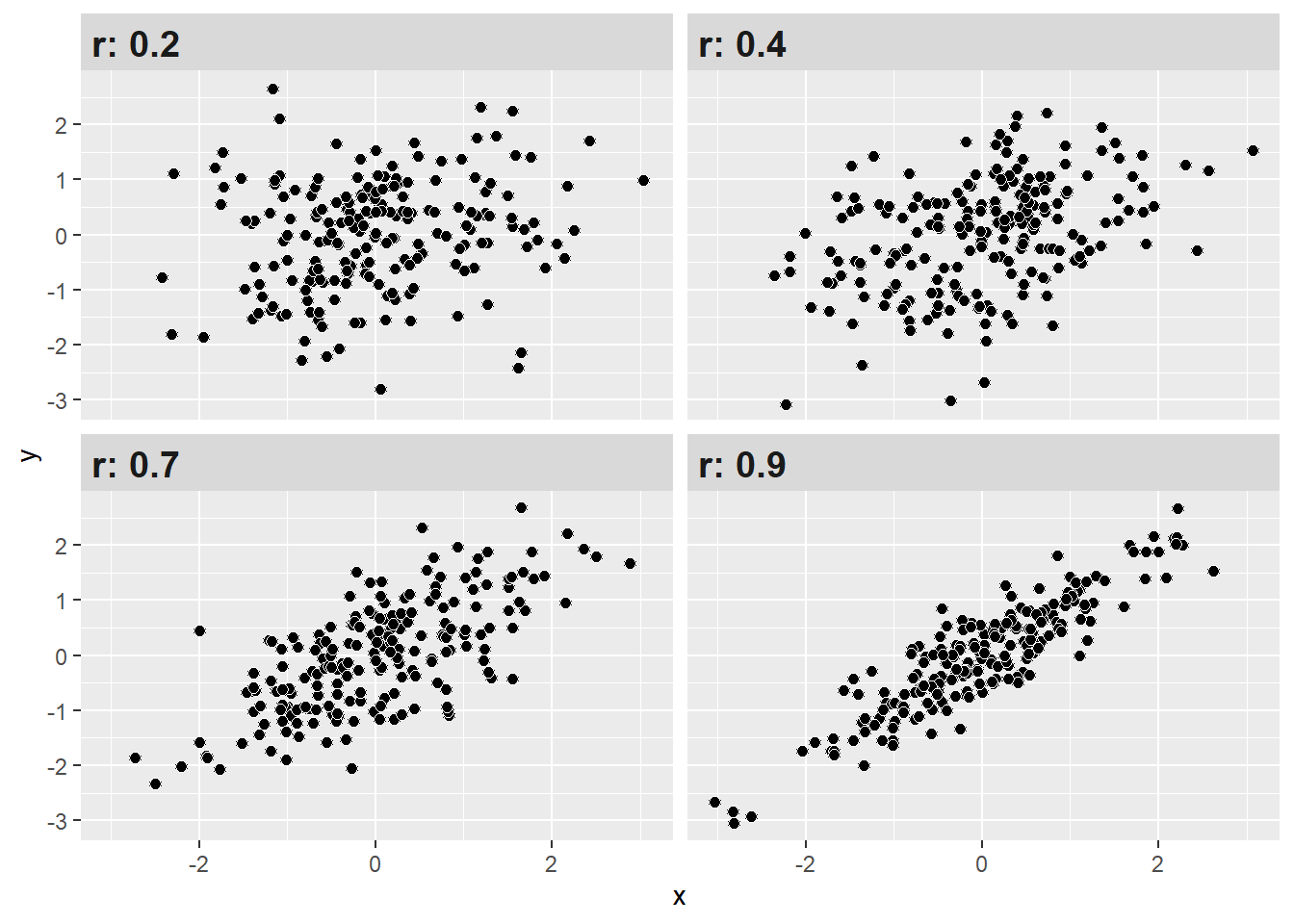 Ahora conocemos el valor del coeficiente mediante al argumento rho, que es igual a 0.7, siendo positivo y grande según los criterios de Cohen (1988).