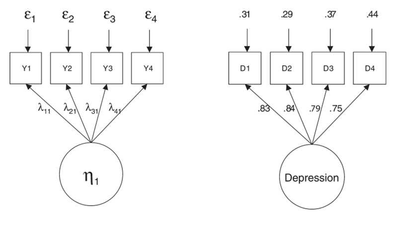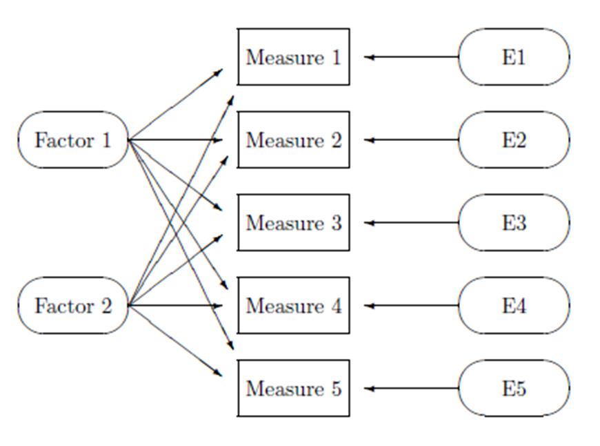 class: front <!--- Para correr en ATOM - open terminal, abrir R (simplemente, R y enter) - rmarkdown::render('static/docpres/07_interacciones/7interacciones.Rmd', 'xaringan::moon_reader') About macros.js: permite escalar las imágenes como [scale 50%](path to image), hay si que grabar ese archivo js en el directorio. ---> .pull-left[ # Metodología I ## **.yellow[Juan Carlos Castillo]** ## Magister Ciencias Sociales FACSO - UChile ## 1er Sem 2023 ## [.green[metod1-mcs.netlify.com]](https://metod1-mcs.netlify.com) ] .pull-right[ .right[ <br> ## .yellow[Sesión 6: Índices y análisis factorial]  ] ] --- layout: true class: animated, fadeIn --- class: inverse, bottom, right, animated, slideInRight # Resumen clase anterior --- # Asociación: covarianza / correlación (II) `\begin{align*} Covarianza = cov(x,y) &= \frac{\sum_{i=1}^{n}(x_i - \bar{x})(y_i - \bar{y})} {n-1}\\ \\ Correlación=r &= \frac{\sum_{i=1}^{n}(x_i - \bar{x})(y_i - \bar{y})} {(n-1)\sigma_x \sigma_y }\\ \\ alternativamente=r &= \frac{\sum(x-\bar{x})(y-\bar{y})}{\sqrt{\sum(x-\bar{x})^{2} \sum(y-\bar{y})^{2}}} \end{align*}` --- # Correlación - medida de asociación lineal entre variables - estandarizada - varía entre -1 y +1: - positiva: a medida que aumenta una, aumenta la otra - negativa: a medida que aumenta una, disminuye la otra - cero: no hay evidencia de asociación lineal entre las variables --- # Nube de puntos (scatterplot) y correlación .center[] --- .pull-left-narrow[ # Cuarteto de Anscombe Para todos: r=0.816 ] .pull-right-wide[ <!-- --> ] --- class: inverse ## Resumen - asociación entre variables y correlación - correlación y causalidad - linealidad - significación y tamaño de efecto - coeficientes alternativos --- class: inverse,right # **.red[Contenidos]** <br> <br> ### 1. Índices ### 2. Análisis factorial --- class: inverse,right # **.red[Contenidos]** <br> <br> ### 1. .yellow[Índices] ### 2. Análisis factorial --- class: middle center # ¿Por qué usar baterías? --- class: middle center .center[  ] --- class: middle .pull-left-narrow[ # Preguntas y error de medición ] .pull-right-wide[ .content-box-yellow[ - Para medir hechos observables simples usualmente se utiliza **una pregunta** (ej: edad) - Fenómenos complejos se miden en general con más de una pregunta, con el objetivo de dar mejor cuenta del atributo (i.e. minimizar error de medición) ]] --- # Baterías de indicadores múltiples - en general las encuestas suelen incluir varias preguntas respecto de un mismo tema -> .red[baterías de indicadores múltiples] -- - cubren distintos aspectos de un mismo fenómeno complejo que no se agota en solo un indicador -> minimiza .red[error de medición] -- - .red[problema]: ¿cómo se analizan indicadores que están relacionados?¿cómo se muestran los resultados? --- # Análisis de indicadores en baterías .pull-left-narrow[ 1. .red[Univariado]: se sugiere presentar análisis descriptivos que contengan todos los indicadores para poder comparar frecuencias ] .pull-right-wide[ .center[  .small[(likert plot, `sjPlot`)] ] ] --- # Análisis de indicadores en baterías .pull-left-narrow[ 2\. .red[Bivariado]: tablas/gráficos de correlaciones (`corrplot`) ] .pull-right-wide[ .center[  ] ] --- # Análisis de indicadores en baterías - Se podría asumir un concepto o .red[dimensión subyacente] a la batería de items - Para facilitar el avance en el análisis (por ejemplo, relacionar ese concepto subyacente con otras variables), muchas veces se reduce la batería a algún .red[tipo de índice (sumativo/promedio)] - ¿Podemos asegurar que los items están realmente .red[midiendo lo mismo]? --- ## ¿Miden lo mismo? .center[  ] --- # Error total de encuesta .center[  ] (Groves et al, 2010, en RATSWD WP 245, 2015) --- class: middle .pull-left-narrow[ # Preguntas y error de medición ] .pull-right-wide[ .content-box-red[ - En este marco se asume que el **indicador es distinto del atributo**, y que la medición del atributo o variable latente conlleva error - Cuando la el atributo se mide con más de una pregunta, se puede intentar estimar la **variable latente** mediante índices o técnicas de **análisis factorial** ]] --- # Medición y error .pull-left[ .center[  ] ] .pull-right[ - antes de agrupar indicadores en un índice hay que evaluar si los indicadores se encuentran relacionados - -> si miden constructos similares - -> si la medición es .red[confiable] ] --- class: inverse center <br> .content-box-red[ ## .red[¿Cómo estimar el nivel de relación entre indicadores que miden un mismo constructo?] ] -- ### Distintas maneras, pero todas se basan en la técnica de la .red[correlación] --- - varianza `$$\sigma^2 = \frac{\sum_{i=1}^{n}(x_i - \bar{x})^2} {n-1}=\frac{\sum_{i=1}^{n}(x_i - \bar{x})(x_i - \bar{x})} {n-1}$$` - covarianza `$$cov(x,y) = \frac{\sum_{i=1}^{n}(x_i - \bar{x})(y_i - \bar{y})} {n-1}$$` - correlación `$$r= \frac{\sum_{i=1}^{n}(x_i - \bar{x})(y_i - \bar{y})} {(n-1)\sigma_x \sigma_y }$$` --- class: bottom right ## .red[Correlaciones, baterías y dimensiones subyacentes] --- # Matriz de correlaciones (1) .center[  Matriz hipotética de indicadores que miden un mismo constructo ] --- # Ej. Matriz de correlaciones (2) .center[  Matriz hipotética de indicadores que miden constructos independientes ] --- # Ej. Matriz de correlaciones (3) .center[  Matriz hipotética de variables que miden dos constructos independientes] --- class: inverse ## .yellow[Entonces:] ### 1. analizar la .red[matriz de correlaciones] antes de generar cualquiér técnica de reducción de información (ej: crear índice) ### 2. evaluar la posibilidad de generación algún tipo de .red[índice] que resuma la información --- # Datos ejemplo - batería atribuciones de pobreza, encuesta "Desigualdad, Justicia y Participación Política" - FONDECYT Iniciación 11121203 (2013-2015) [Social justice and citizenship participation](https://jc-castillo.com/project/fondecyt-iniciacion/) .center[  ] --- ```r load("input/data/data